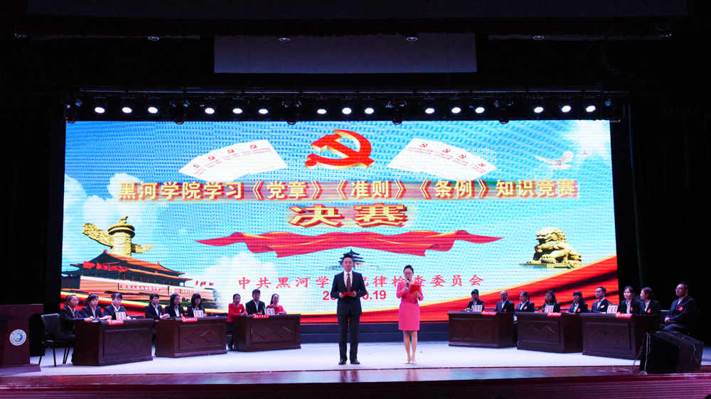本网讯(记者 赵宇 摄影 何振东)为切实贯彻学习《中国共产党章程》《中国共产党廉洁自律准则》和《中国共产党纪律处分条例》,增强广大党员干部学习、遵守和维护制度的自觉性,促进干部廉政勤政,10月19日下午,学校在明德楼礼堂举办了学习《党章》《准则》《条例》知识竞赛。党委书记曹百瑛、党委副书记杨宏,副校长车永宏、许海深、丛喜权,党委委员、组织部部长邹辉、宣传统战部部长吴春娟及各学院、各部门负责人与近千名师生共同观看了比赛。