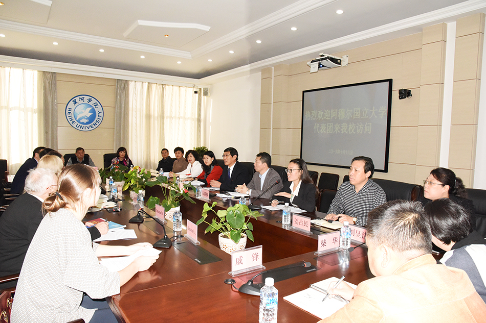 两校领导围绕专业建设、科学研究、文化交流等领域的未来合作进行了座谈。阿穆尔国立大学代表团从联合培养本科生和硕士生、互换教师、开展系列文化活动、在我校建立“阿穆尔国立大学实践基地”“阿穆尔国立大学语言文化中心”等十个方面提出了合作意向,并正式邀请我校教师参加12月5日至8日在阿穆尔国立大学举办的国际青年经济论坛。