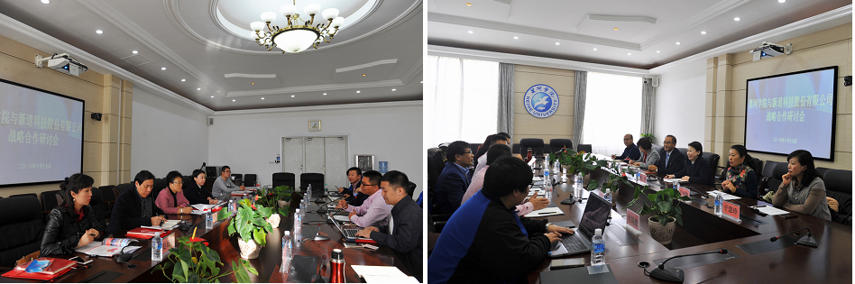 范广辉经理与与会人员交流了新道科技股份有限公司近年来的发展以及与其他高校合作的情况及经验,并就与我校进行战略性合作事宜提出了建设性意见。