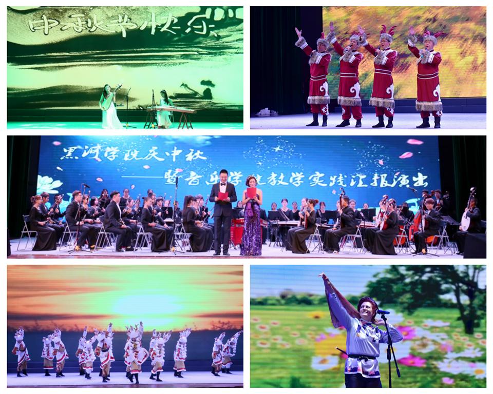 本网讯(特约记者 陈泽刚)金秋九月,丹桂飘香,花好月圆。9月15日晚,学校礼堂隆重举行了黑河学院庆中秋晚会暨音乐学院教学实践成果汇报演出。晚会正值“首届黑龙江流域文明暨俄罗斯远东历史文化与社会发展论坛”在我校召开,来自中俄日韩四国的专家学者与我校近千名师生共同观看了晚会,度过了一个难忘的中秋夜晚。