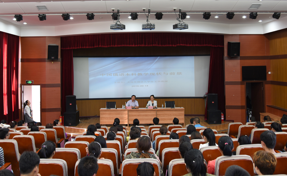 本网讯(记者 何振东)9月14日下午,大连外国语大学原校长孙玉华教授为外国语学院200余名师生作了题为“中国俄语本科教学现状与前景”的学术讲座。讲座由外国语学院院长姜占民主持。
