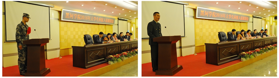 会上,学校党委委员、宣传统战部部长吴春娟宣读了黑河学院2016年大学生应征入伍名单及分配方向。在今年的征兵工作中,我校适龄学生踊跃报名,经过严格的选拔,最终有18名男生、6名女生从学校应征入伍,即将分赴拉萨54旅、新疆防空旅、黑龙江森警、黑龙江省武警消防、黑龙江省军区、西部战区21集团军等部队,肩负保家卫国的使命。随后,与会领导为入伍新兵佩戴红花并合影留念。