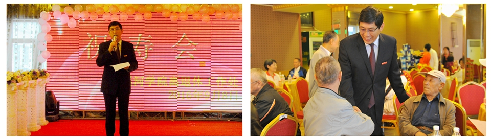 在《祝你生日快乐》的乐曲声中,祝寿会拉开帷幕。副校长张焕强致贺词,他说:“学校今天的成就离不开老一辈教育工作者的汗水和心血,感谢老教师们为学校创立、建设、发展作出的历史贡献,学校将一如既往地关心和重视离退休干部工作,为老教师们创造更好的生活条件,也希望老教师们能够保重身体,继续关注学校的建设发展,成为学校今后不断取得更大进步的坚强后盾”。