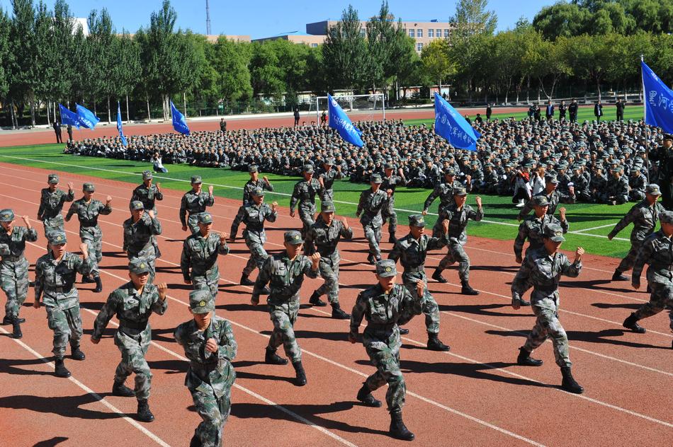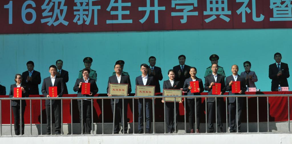 中国人民解放军65951部队的全体承训教官及学校各处室、各学院负责人、全体辅导员、2016级2588名新生参加开学典礼。