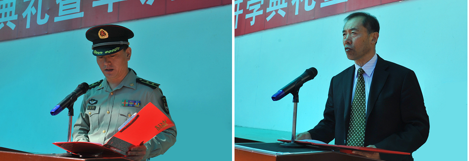 中国人民解放军65951部队副政治委员魏恒越中校宣读了2016级学生军训计划和军训考核评比办法;党委副书记李廷栋宣读了《关于表彰黑河学院2015年就业工作先进集体和先进个人的决定》。