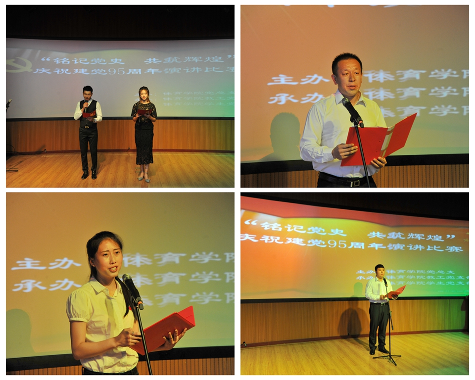 为了庆祝中国共产党成立95周年,进一步开展好“两学一做”教育实践活动,7月4日晚,体育学院举办了“铭记党史 共筑辉煌”庆祝建党95周年演讲比赛。