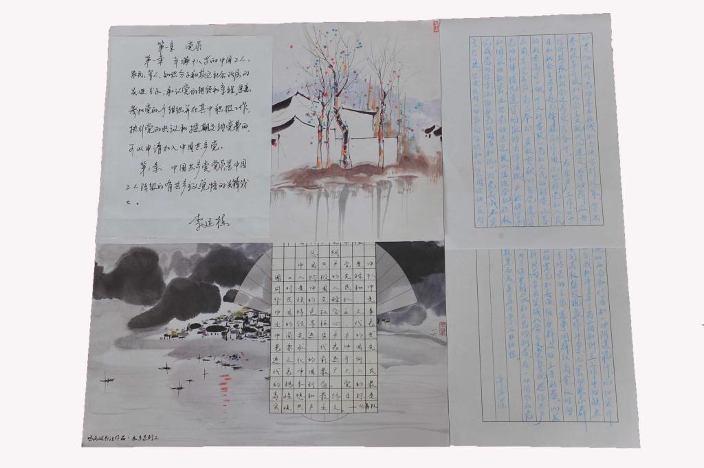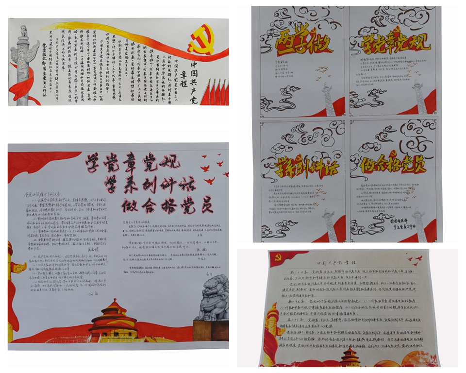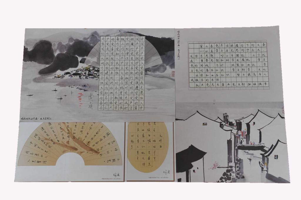 自学校实施“两学一做”学习教育以来,机关党总支认真开展学习讨论,并组织全体党员积极参与“百日手抄党章”活动。活动中,领导干部带头,党员齐参与,掀起了一股“重读党章、手抄党章”的热潮。党员们发挥创意,参展作品形式多样,既有字迹工整,态度严谨的整本抄写,又不乏剪纸、书法、硬笔等充满特色的创意作品。党员们用抄写诵读的方式来提升党性修养和党纪意识,加深对党的纲领的理解,坚定理想信念。