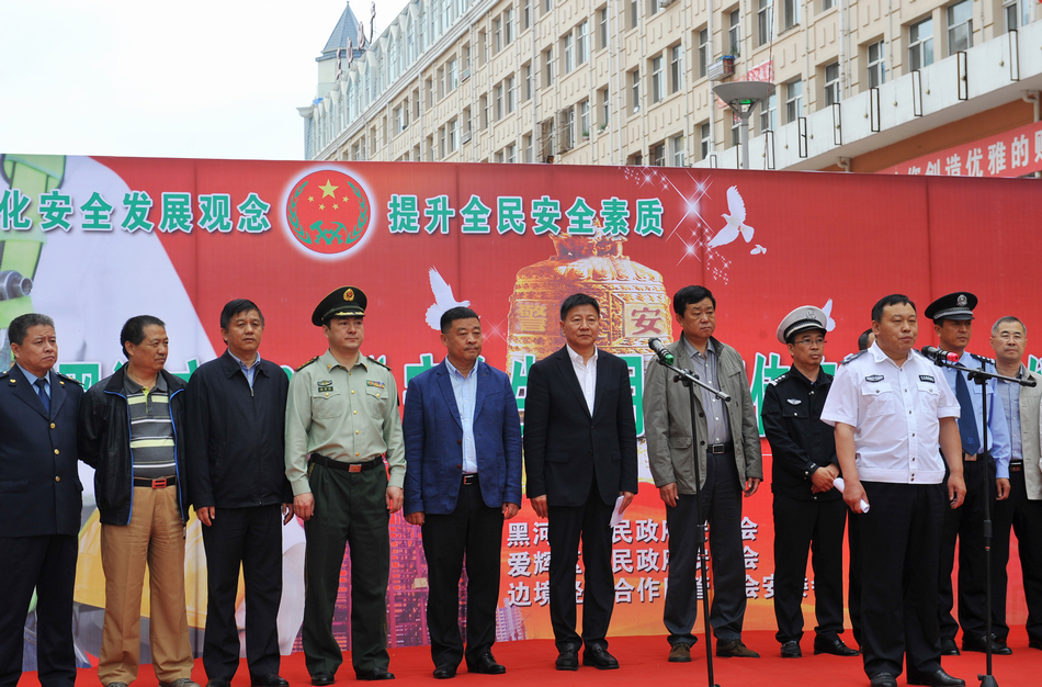 本网讯(记者 何振东)今年6月是全国第十五个“安全生产月”,为传播法治文化,普及安全知识,形成关注安全、关爱生命、依法治安的浓厚氛围,6月16日上午,黑河市人民政府安委会、爱辉区人民政府安委会、边境经济合作区管委会安委会在中央商业步行街举行了以“强化安全发展理念 提升全民安全素质”为主题的2016年黑河市“安全生产月”宣传咨询活动。黑河市市委常委、副市长、市安委会副主任姚龙,黑河学院副校长车永宏等领导出席活动启动仪式,我校各部门负责人和安全员参加了此次活动。