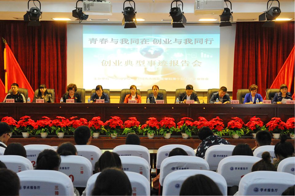 本网讯(记者 赵宇)5月4日,黑河市市场监督管理局个体私营企业协会到我校求知楼报告厅举办“青春与我同在 创业与我同行”黑河市创业典型事迹报告会,5位企业家讲述了自己创新创业历程。黑河市市场监督管理局个体私营企业协会秘书长董春蕾、我校团委书记王福军,黑河市人社局创业指导科、黑河市市场监督管理局企业科相关负责人及我校各学院团总支书记、辅导员和学生400余人参加了报告会。报告会由校团委书记王福军主持。