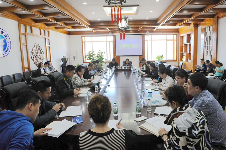 本网讯(记者 赵宇)4月29日上午,学校在明德楼三楼会议室召开2015级学生军训协调会。党委副书记杨宏、副校长许海深,船艇大队训练中队中队长丁晓辉,党委(校长)办公室、宣传统战部、学生工作部(学生处)•武装部、团委、教务处、财务处、保卫处、后勤管理处、现代教育技术中心及各学院相关负责人参加会议。会议由党委副书记杨宏主持。