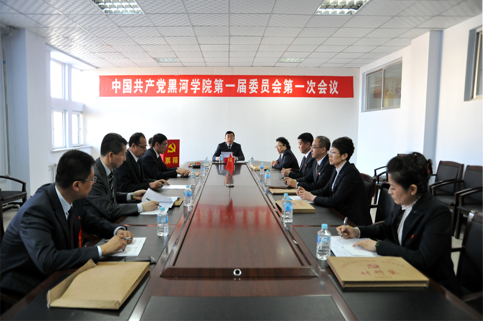本网讯(记者 赵宇 摄影 何振东)4月28日下午,中国共产党黑河学院第一次代表大会胜利闭幕后,中国共产党黑河学院第一届委员会举行第一次全体会议,新当选的11名党委委员参加会议。