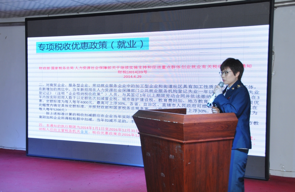 黑河市国税局的工作人员从专项税收优惠条件、增值税税收优惠、企业所得税税收优惠政策三个方面进行了细致的讲解,并对涉税事项办理流程等大学生关心的问题一一进行了解答。
