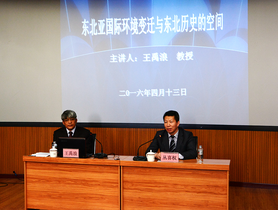 本网讯(记者 王佳 郑承江 路董萌)为使我校师生深入了解东北亚区域国际关系和东北史,明确黑河及黑河学院在东北亚区域合作中的重要作用,4月13日下午,大连大学中国东北历史研究中心主任、我校中俄边疆历史文化与社会发展研究中心名誉主任王禹浪教授应邀为师生作了题为“东北亚国际环境变迁与东北的历史空间——以黑龙江流域为中心”的学术报告。副校长张焕强、丛喜权,黑河市社科联主席朱昊旻,黑河历史研究会、黑河市文联、黑河市文物收藏家协会、爱辉区档案局相关负责人以及我校师生代表听取了讲座。讲座由副校长丛喜权主持。