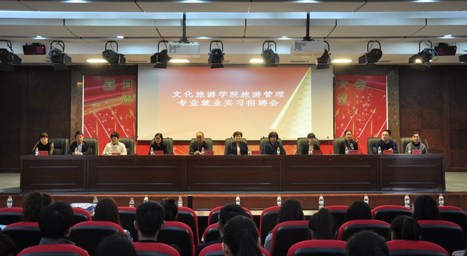 本网讯(学生记者 王文博 赵凯龙 赵悦 郭凯凯)为推动我校2013级实习生与2016届毕业生充分实习和就业,搭建实习、毕业生和用人单位双选平台,3月25日,文化旅游学院在求知楼报告厅举办了2016年旅游管理专业就业实习招聘会。