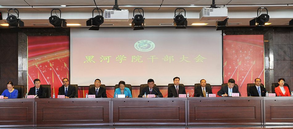 受省委委托,党委书记曹百瑛代表校党委宣布省委常委会对我校领导班子调整的决定,董贵杰同志任黑河学院党委委员、纪委书记,许海深同志任黑河学院党委委员、副院长,丛喜权同志任黑河学院党委委员、副院长;宋立权同志不再担任黑河学院副院长,调任黑龙江工程学院副院长。曹书记对已退休的原纪委书记孙丽莉和调任的副院长宋立权两位同志多年来为学校发展建设作出的贡献给予高度评价,对三位新任职同志作了介绍。曹书记指出,董贵杰、许海深、丛喜权三位同志的任职为黑河学院党政领导班子注入了新的血液,必将有利于我校领导班子建设和干部队伍建设整体水平的提高,有利于学校事业的可持续发展。曹书记希望,学校各级领导班子要增进团结、勇于担当、廉洁自律,不断增强整体合力,促进学校事业健康发展;全校教职工要提高认识,把思想和行动统一到省委决定上来,振奋精神,团结一心,攻坚克难,为学校“十三五”事业发展开好局、起好步作出积极贡献。