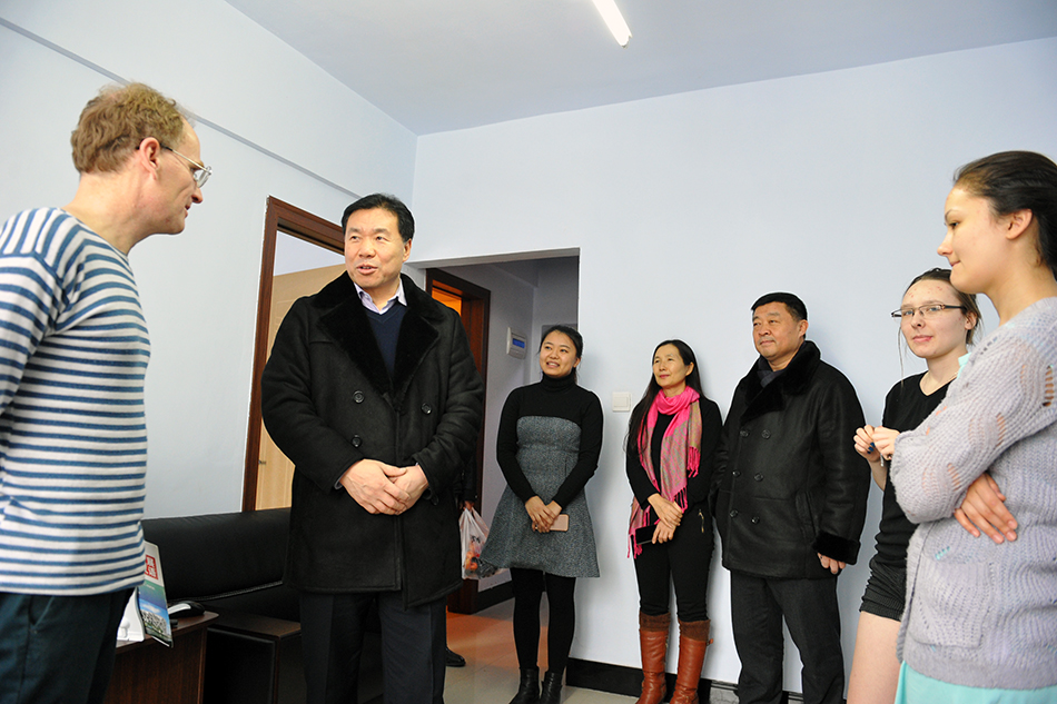 本网讯(记者 王佳)1月5日,校长贯昌福、副校长车永宏冒着严寒来到学校,看望、慰问寒假在校留学生和在岗值班人员。