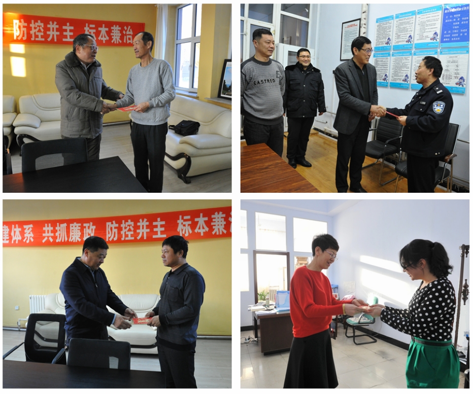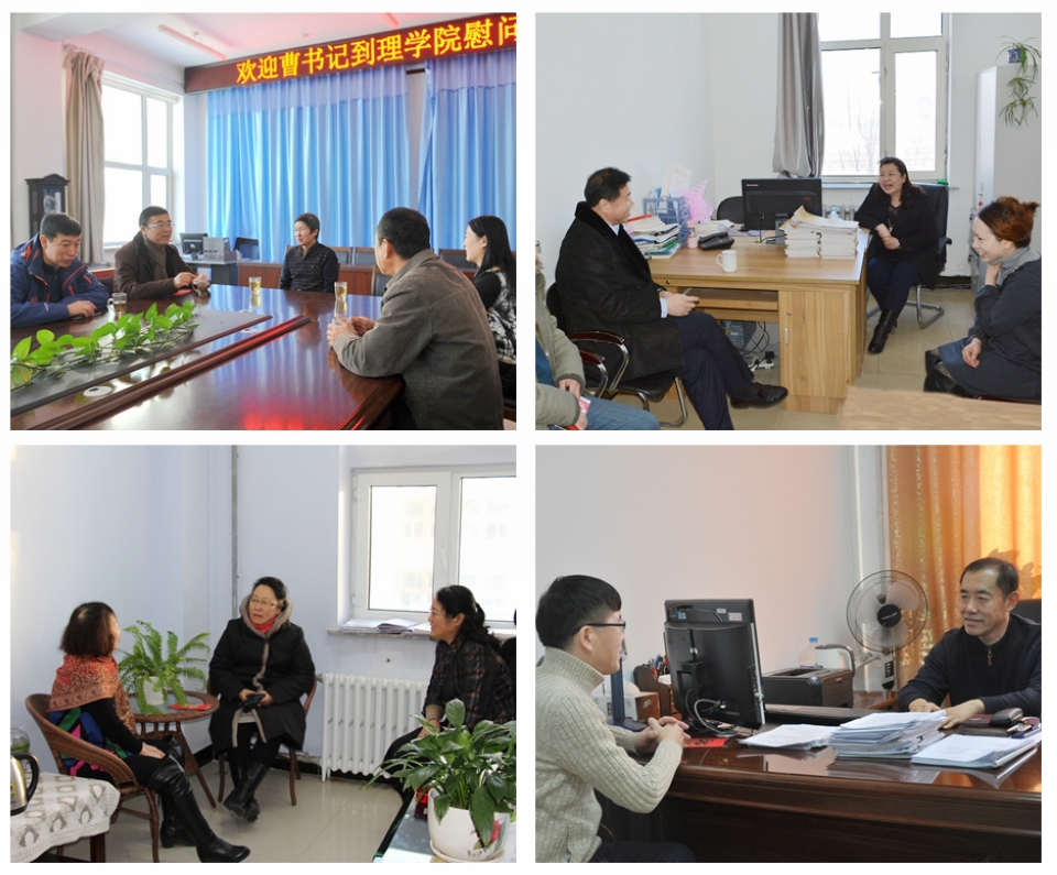本网讯(记者 赵宇 摄影 郑承江 刘思佳)学校党委始终关注困难教职工的工作和生活,在新年来临之际,党委书记曹百瑛、校长贯昌福,党委副书记杨宏、李廷栋,副校长宋立权、张焕强、车永宏,总会计师宁艳杰分别深入理学院、美术与设计学院、通识教育学院、思想政治理论课教学科研部、科研处、后勤管理处和保卫处,走访慰问困难职工,送上慰问金,表达新年的问候和美好的祝愿。