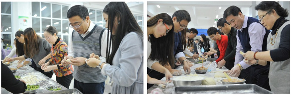 座谈会后,学校党委书记曹百瑛、校长贯昌福,党委副书记杨宏、李廷栋,副校长宋立权、张焕强、车永宏,总会计师宁艳杰,党委委员、纪委副书记、纪检监察处处长阮放与青年教师在稻香园餐厅一起动手包饺子,以崭新的姿态迎接新年的到来。