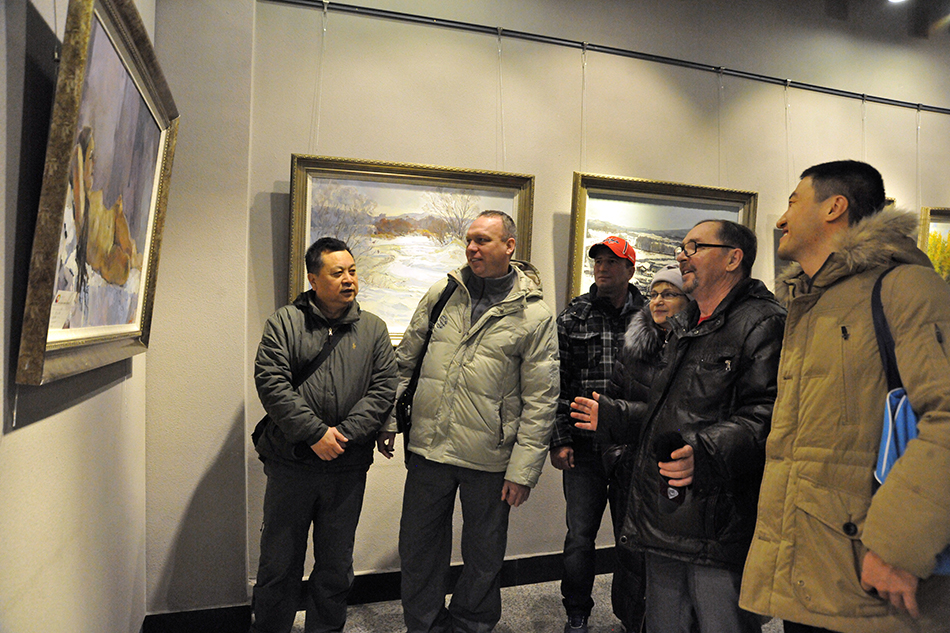 本网讯(记者 吴春娟 王佳 赵宇)12月21日,亮相黑龙江现代文化艺术产业园区中俄师生艺术品展销平台的我校师生作品展迎来了专家开放日,黑龙江省文联主席傅道斌,黑龙江省教育厅副厅长牧童,黑龙江省文联副主席、省美术家协会主席吴团良等领导与知名学者、画家在我校副校长宋立权陪同下参观了师生作品,并与我校俄罗斯籍教师和师生代表交流研讨创作技法和创作感受。