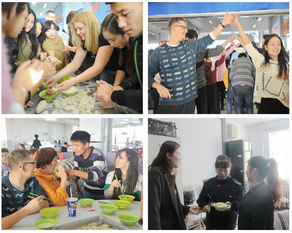 主持人宣布包饺子活动开始后,饺子馅和饺子皮被一一端了上来,看着这些即将被创造成美食的原料,师生们都摩拳擦掌,准备一显身手。外籍教师斯维塔“技艺”娴熟,取馅、沾水、捏合,很快包出一个带有花边的饺子。随着饺子数量的增多,花样也越来越多,有的学生包出了向日葵饺子,有的学生直接把饺子包成了馄饨,现场成了包饺子创意大赛,热闹非凡。在活动中,多才多艺的师生们还展示了萨克斯演奏、歌曲、舞蹈等才艺,外籍教师奥列格与师生伴着《斗牛士之歌》的乐曲跳起了欢快的斗牛舞,现场处处洋溢了喜庆气氛和青春气息。