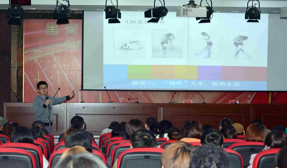 本网讯(特约记者 陈泽刚)11月25日,学校邀请东北师范大学舞蹈系主任、青年编导谢飞为我校师生作舞蹈创作专题讲座。本次讲座分为理论与实践两部分,由音乐学院院长徐卫主持,我校师生近300人聆听了讲座。