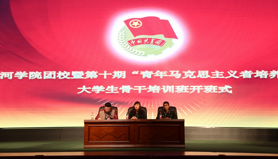 本网讯(特约记者 梁云婴)为深入学习贯彻习近平总书记系列重要讲话精神,切实开展“四进四信”活动,培育和践行社会主义核心价值观,11月24日,黑河学院团校暨第十期 “青年马克思主义者培养工程”大学生骨干培训班开班仪式在明德楼礼堂举行,校团委及相关学院负责老师出席本次活动。