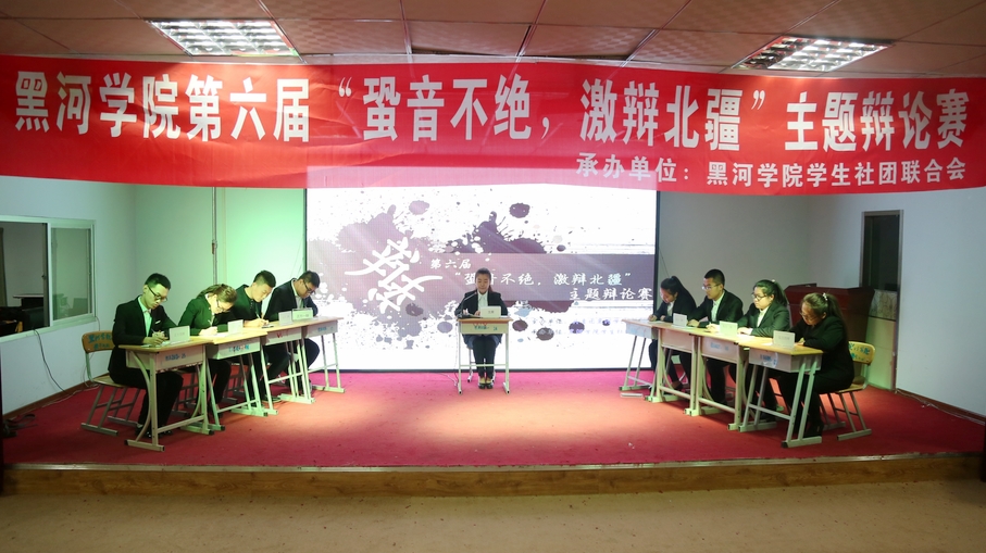 本网讯(特约记者 梁云婴 张预玮)11月9日晚,由共青团黑河学院委员会主办,校学生社团联合会承办的第六届“蛩音不绝激辩北疆”主题辩论赛总决赛在润德楼412礼堂举行。校团委、党委宣传统战部、文化旅游学院及人文传媒学院的相关教师参加活动并担任评委,与师生们一同欣赏了这场智慧与口才的较量。