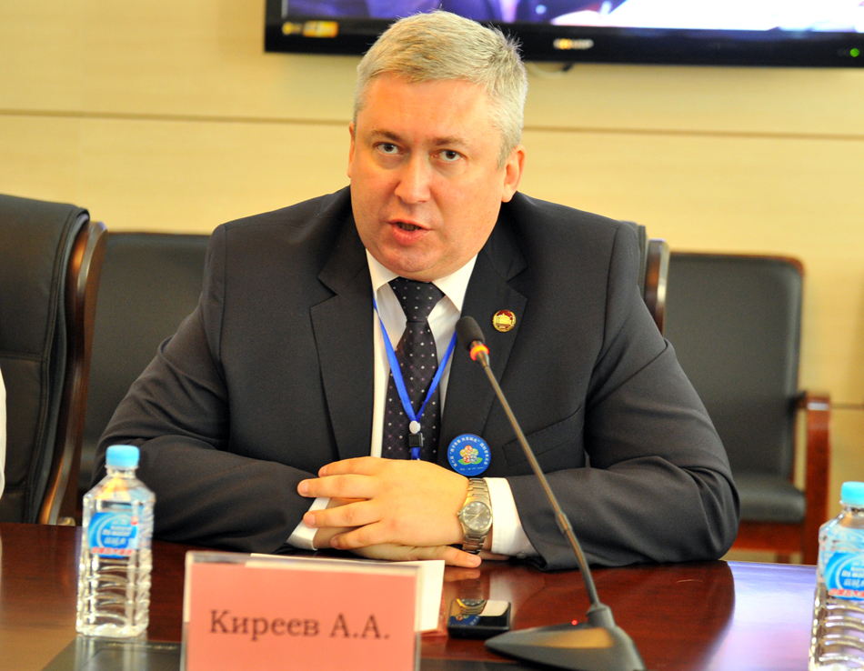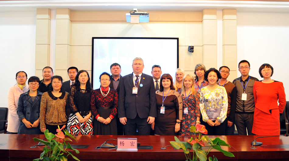 本网讯(记者 王佳 )10月15日下午,作为第六届“携手青春 共享阳光”国际青年大会系列活动之一的“中俄高校圆桌会议”在明德楼二楼会议室举行,俄罗斯布拉戈维申斯克国立师范大学副校长基列耶夫·阿列克谢·亚历山大洛维奇、中国黑河学院党委副书记杨宏与来自布拉戈维申斯克国立师范大学、东北农业大学、齐齐哈尔医学院、绥化学院、黑河学院的二十余位教育工作者围绕“爱国主义与公民教育”这一主题进行了深入探讨和交流。