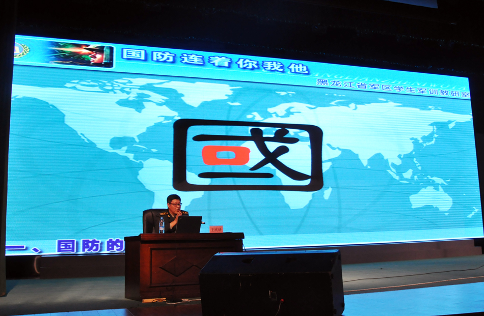 本网讯(通讯员 路董萌)10月10日,学校在明德楼礼堂举办了题为“国防连着你我他”的国防教育讲座。黑龙江省军区学生军训教研室王欣研主任从国防的含义、类型、国防历史、新中国的国防成就等方面为同学们系统阐述了国防对国家的重要性。