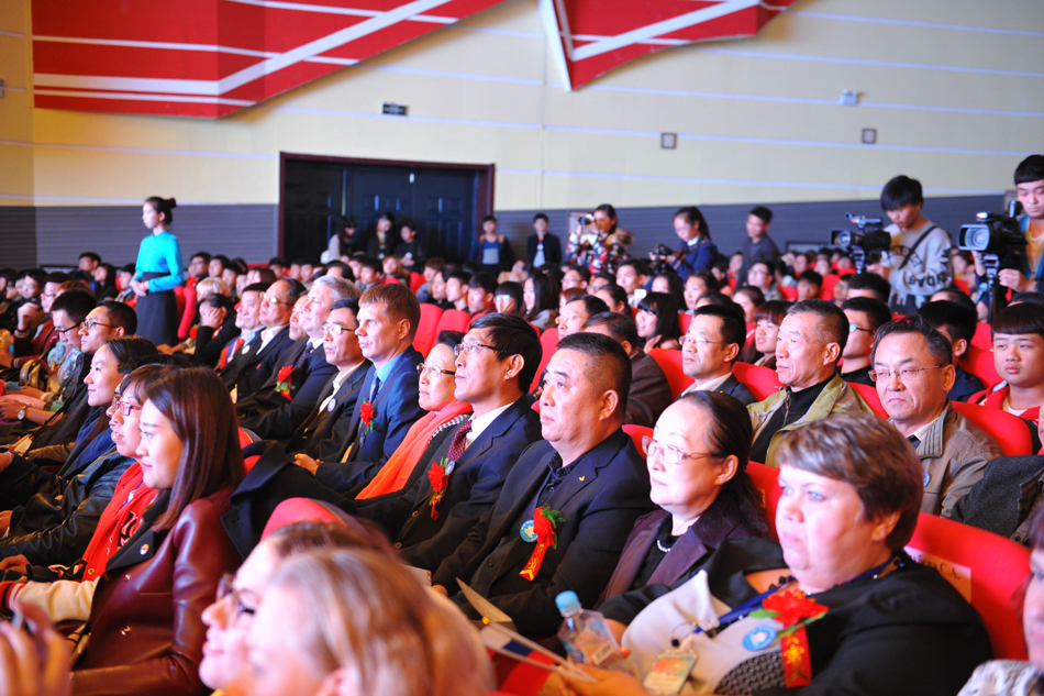 黑河学院党委书记曹百瑛,党委副书记杨宏、李廷栋,副校长宋立权、张焕强、车永宏,党委委员、纪委副书记、纪检监察处处长阮放;黑河市教育局党委委员、黑河市人民政府教育督导室副主任李明,黑河市中俄友好协会副秘书长刘群;俄罗斯布拉戈维申斯克国立师范大学副校长基列耶夫·阿列克谢,国际教育合作处处长古哈林科·尼古拉,行政工作处处长戈鲁别娃·斯维特拉娜,公共关系处处长戈尔库沙·亚历山德拉与中俄10所高校千余名师生出席开幕式,并观看了中俄民族风情展演。