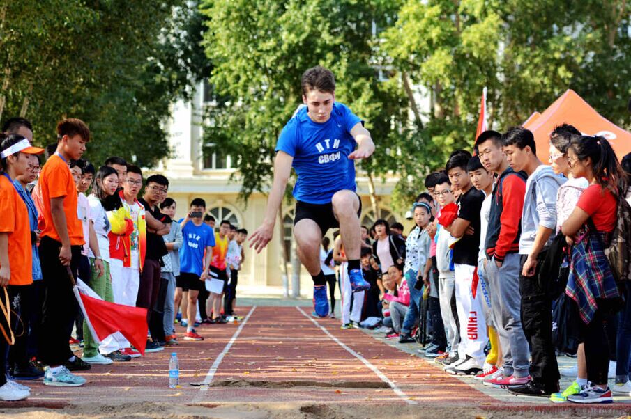 伴随着激昂嘹亮的《运动员进行曲》,步伐矫健的裁判员代表队、教职工代表队、俄罗斯远东高校代表队及由各学院组成的学生方阵迈着铿锵有力的步伐依次入场,以昂扬向上的青春风姿接受主席台检阅。