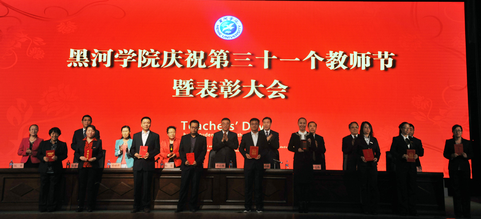 本网讯(记者 何振东 摄影 王佳)9月9日下午,学校在明德楼礼堂举行了庆祝第三十一个教师节暨表彰大会,表彰和奖励过去一年在教育教学工作中涌现出来的先进集体和个人。学校党委书记曹百瑛,校长贯昌福,党委副书记杨宏、李廷栋,纪委书记孙丽莉,副校长宋立权、张焕强、车永宏,党委委员、纪委副书记、纪检监察处处长阮放出席大会,并为获奖集体和教师代表颁奖;各学院(部、中心)、各部门负责人和部分师生代表参加了会议。大会由校长贯昌福主持。