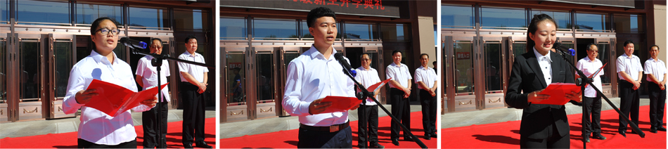 理学院牟艳男博士代表全体教师发言,她希望新生们尽快适应大学生活,坚定自己的理想,勤奋学习,发愤图强,立志成为有用之才;经济管理学院2014级国际经济与贸易专业马踞博同学向新生们分享了在学校学习、生活的经历和心得体会;新生代表2015级人文传媒学院广播电视编导专业马思然同学在发言中表达了成为一名黑河学院人的喜悦,并表示将不辱使命,成才报国。