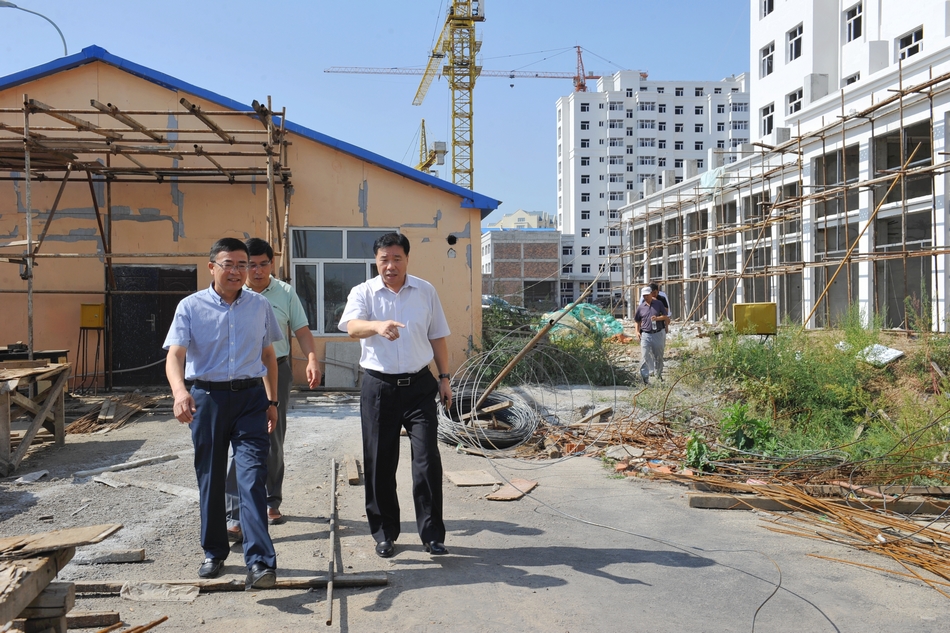 本网讯(记者 何振东)9月1日上午,校党委书记曹百瑛、校长贯昌福、副校长张焕强、车永宏在校党委(校长)办公室、工会、审计处、后勤管理处等相关部门负责人的陪同下前往教职工集资楼和学校扩建回迁安置施工现场(学府家园),实地检查工程建设情况。