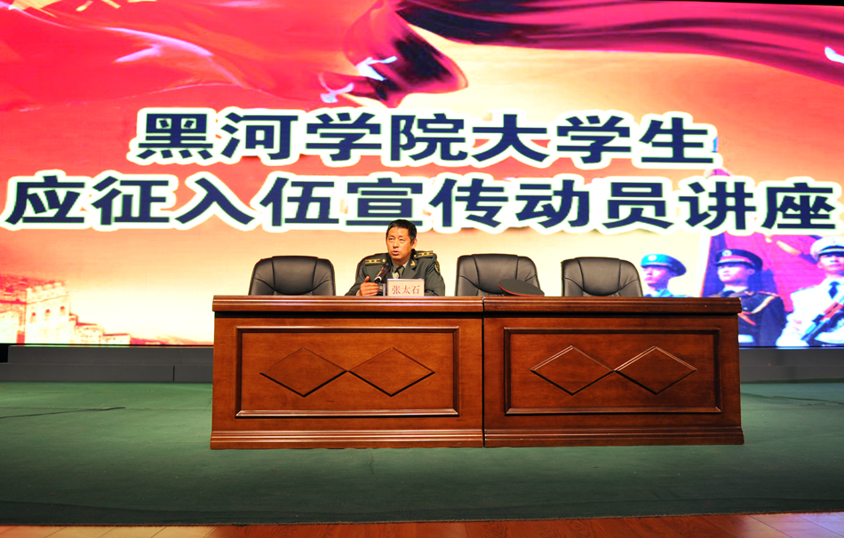 本网讯(特约记者 梁策)5月22日,应学校武装部邀请,爱辉区武装部副部长张太石在明德楼礼堂为我校师生作了大学生应征入伍宣传动员讲座。
