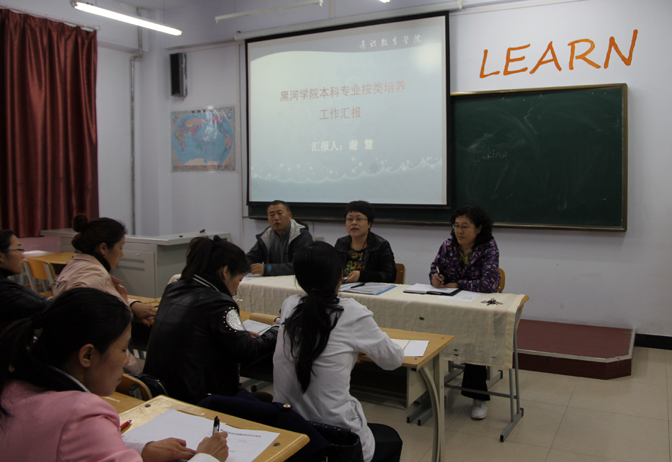 会上,谢慧院长就“黑河学院本科专业按类培养工作”做了专题汇报。分析了省内本科高校实施按类人才培养的情况,阐述了大类招生与人才培养模式改革的背景、主要内涵和重要意义,解读了我校外国语言文学类、计算机类专业人才培养方案的主要内容。
