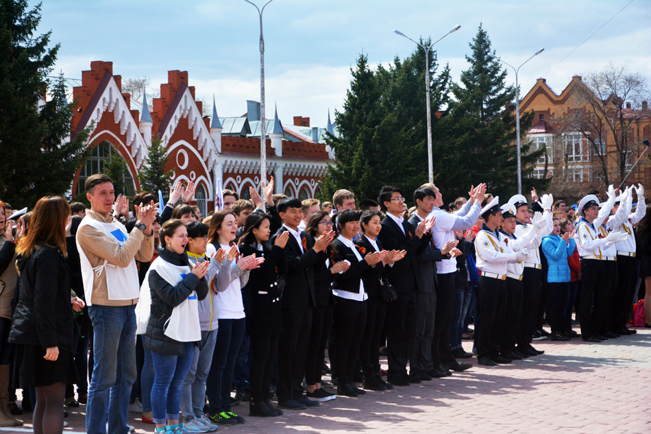 5月8日,在布拉戈维申斯克市胜利广场举行了纪念卫国战争胜利70周年活动,我校学生代表组成中国唯一一所高校代表团与来自阿穆尔州10余所高校的师生共同参加了千人组成的“Спасибо”方队,表达对反法西斯战争中牺牲战士们的缅怀。
