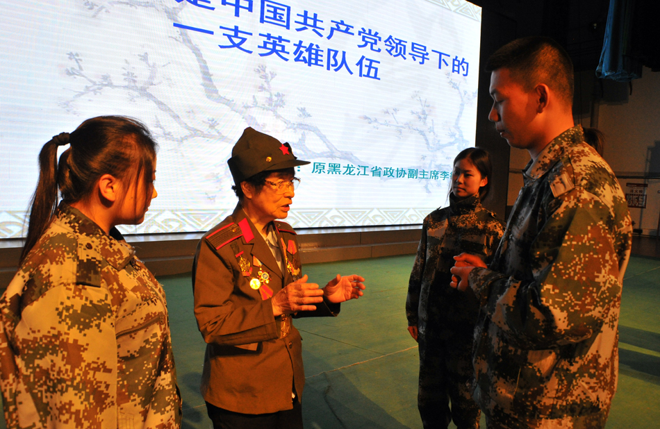 抗联老战士、原省政协副主席李敏同志为学生讲述抗日联军故事