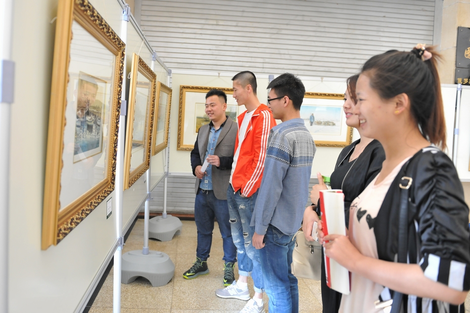 本网讯(记者 何振东)5月11日上午,美术与设计学院2011级学生姜明泽同学水彩画作品展在明德楼隆重开幕,向全校师生展示他四年专业学习的成果。美术与设计学院党总支书记李珊、副院长戚锋、党总支副书记王小娟及百余名师生一同参加了开幕式。