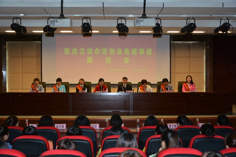 黑河市、区妇联,市直和爱辉区部分机关、企、事业单位的同志,女村官及有创业意愿的妇女代表及我校学生等500余人参加了报告会。