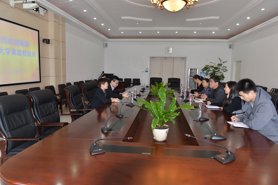 本网讯(记者 何振东 摄影 王佳)4月9日至10日,韩国又松大学来我校举办留学宣讲会,我校副校长张焕强热情接待了又松大学国际交流中心中国部部长吕冬卉一行。留学宣讲会在我校求知楼学术报告厅举行,我校外事处、英语系、经济管理系负责人及学生代表300余人参加了此次宣讲会。