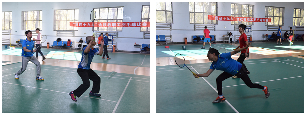 15日上午,教职工羽毛球比赛在体育馆如火如荼地举行。参加比赛的30余名教职工在男双、女双、混双和团体赛四个项目中,团结协作,奋勇拼搏,时而网前轻吊,时而凌空扣杀,比赛高潮迭起,精彩纷呈。经过激烈角逐,马宝发、王楠和姜占民、王飞分获男双A组和B组冠军,崔安宁、王佳媛获女双冠军,刘铁刚、刘振涛、车志伟、王飞、袁野组成的团队获“无羽轮比”团体赛冠军。