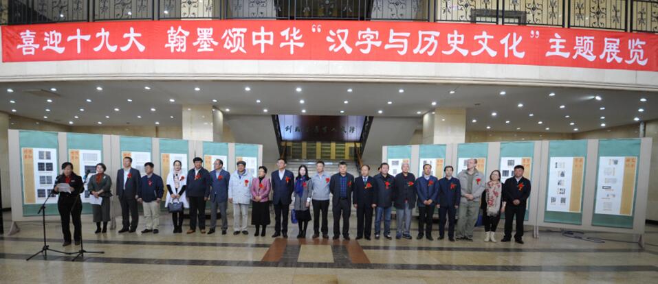 本网讯(记者 关月 摄影 赵宇)9月27日,“喜迎十九大 翰墨颂中华——汉字与历史文化主题展览”在明德楼一楼拉开帷幕。党委书记曹百瑛,党委副书记杨宏、李廷栋,副校长车永宏、丛喜权,党委委员、总会计师、财务处处长宁艳杰,学校特聘教授、远东研究院名誉院长王禹浪及参加“首届黑河地区古代文化与城史纪元”学术研讨会的各位专家学者、中外师生代表百余人参加开幕式。开幕式由文化旅游学院院长潘华主持。