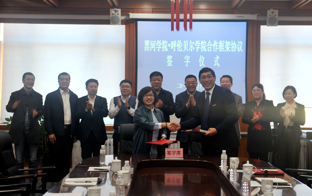 副校长张焕强与呼伦贝尔学院副校长梁秀梅签订了《黑河学院·呼伦贝尔学院合作框架协议》。
