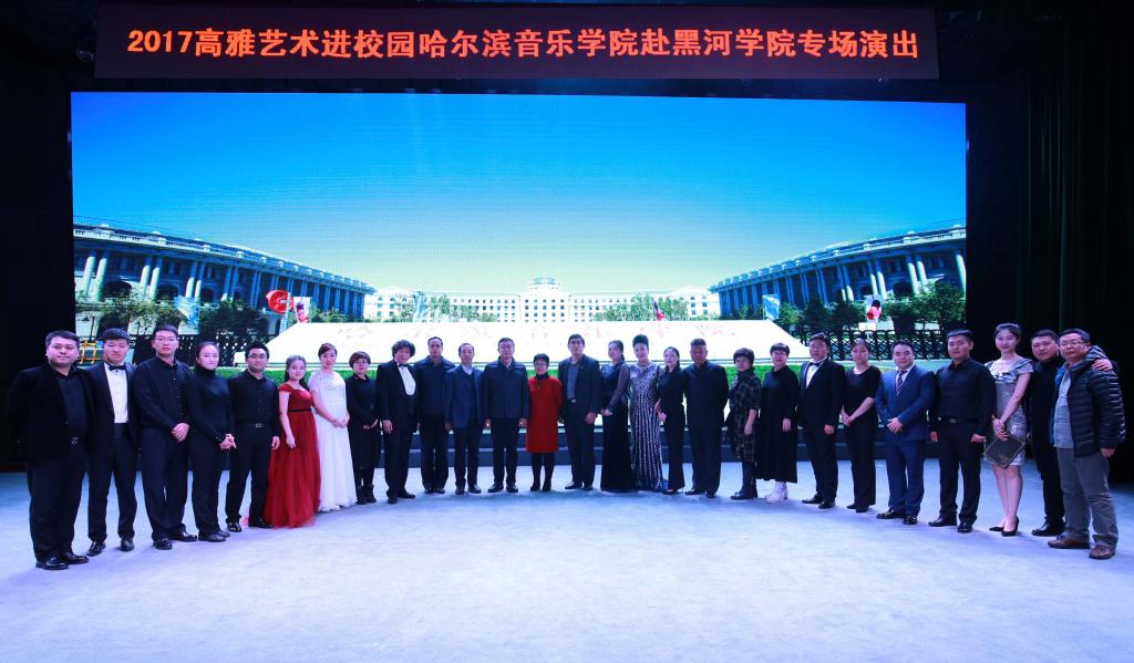 本网讯(学生记者 谭善武 张子腾 摄影 魏辉辉 赫雪冬 李元科)11月2日下午,由我校承办的2017高雅艺术进校园哈尔滨音乐学院赴黑河学院专场音乐会在我校明德楼礼堂隆重上演。现场座无虚席,党委书记曹百瑛,党委副书记杨宏、李廷栋,副校长张焕强,纪委书记董贵杰与近千名师生共同欣赏了这场高水准的音乐盛宴。