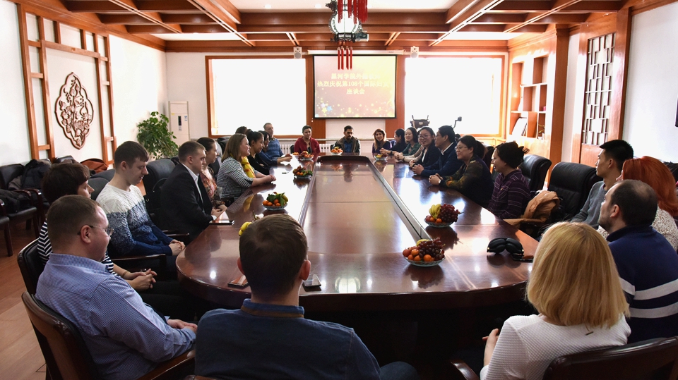 本网讯(记者 赵宇)3月8日中午,我校在明德楼三楼会议室组织召开外籍教师庆祝第108个国际劳动妇女节座谈会,副校长张焕强与外籍教师齐聚一堂共庆妇女佳节。