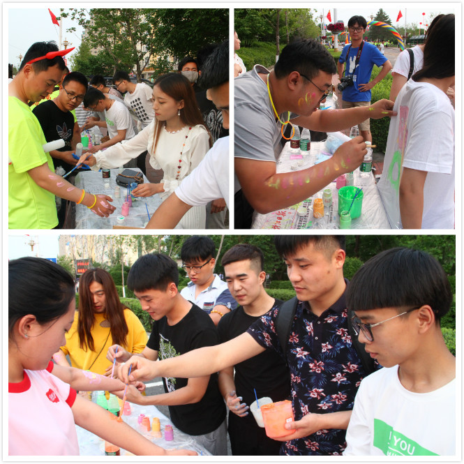 在“荧光夜跑”活动中,我校13名学生身着多彩银光饰品参加了荧光夜跑演出,合唱《马克思是个90后》将活动推向高潮。美术与设计学院教师齐鲁带领26名学生拿起了画笔,为参加活动的人员涂绘上绚丽多彩的荧光颜料,助力黑河“不眠之夜”。