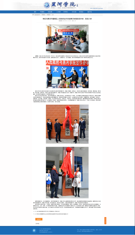我校与黑河市爱辉区人民政府合作共建黑河学院附属中学、附属小学