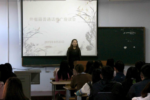 (学生记者 李俊宏 韩欣 摄影 李明阳)为做好“第十八届推广普通话活动周”工作,让黑河学院外省籍学生更好地了解普通话、说普通话、用普通话,9月23号下午,一场以“我与普通话零距离”为主题的普通话推广座谈会在求知楼B203成功举办。