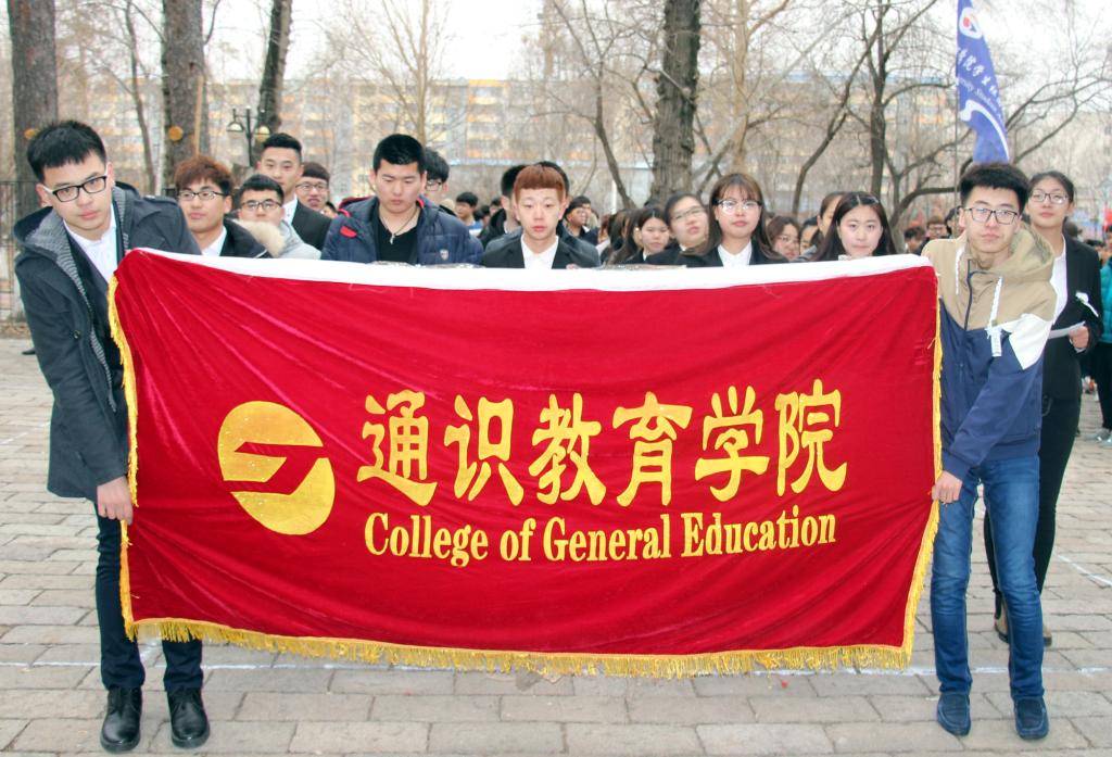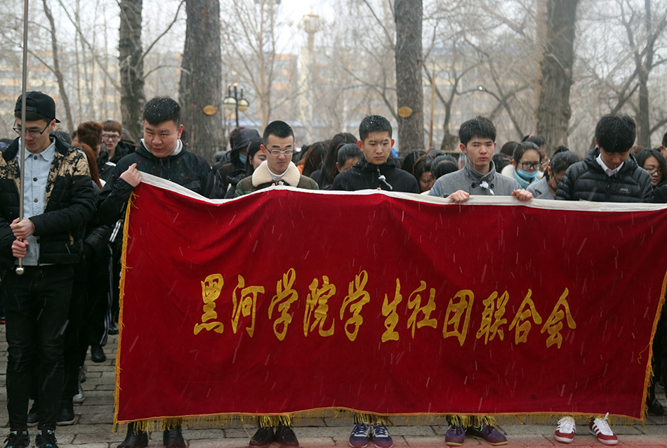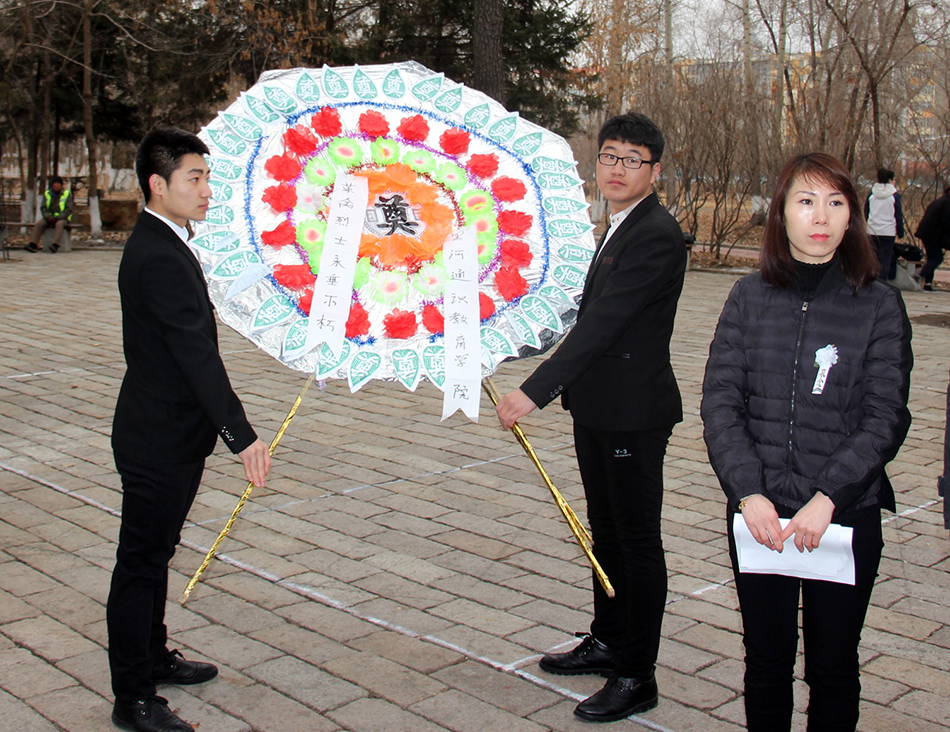 通识教育学院的师生们胸前佩戴白花,向英雄们敬献了花圈。